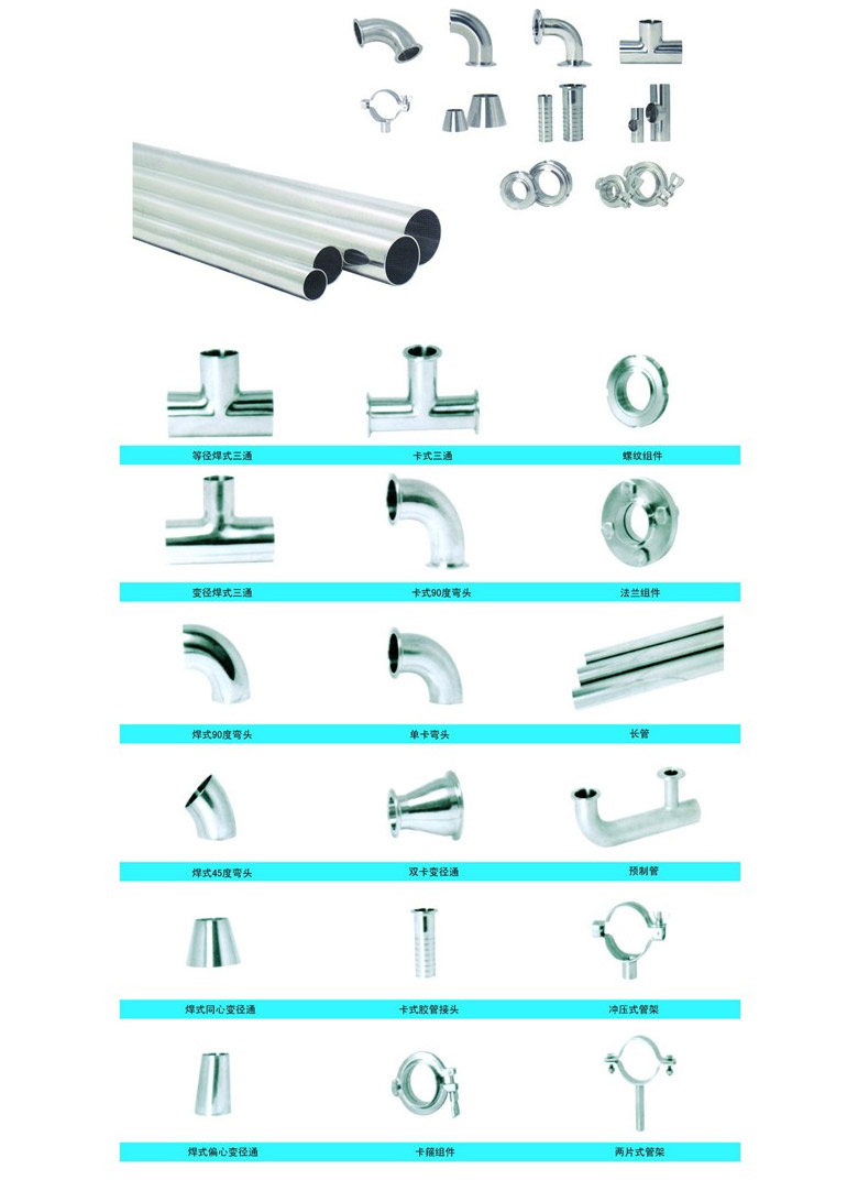本公司生產(chǎn)的衛(wèi)生管件、接頭是采用日本、德國進口設備及先進工藝技術制作,產(chǎn)品制造標準為IDF和DIN,也可按用戶所需標準制造。