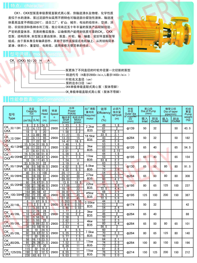 CK1、CKX型直聯(lián)式單級(jí)離心泵